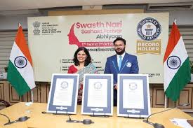 సాక్షి డిజిటల్ న్యూస్ :మహిళల ఆరోగ్యమే లక్ష్యంగా కేంద్ర ప్రభుత్వం ప్రారంభించిన స్వాస్థ్ నారీ, సశక్త్ పరివార్ అభియాన్ కార్యక్రమానికి అరుదైన ఘనత దక్కించి. కేంద్ర ఆరోగ్య, కుటుంబ సంక్షేమ శాఖ ఆధ్వర్యంలో చేపట్టిన ఈ కార్యక్రమానికి గాను భారతదేశం మూడు గిన్నిస్ వరల్డ్ రికార్డులను అందుకుంది. ఒకే నెలలో అత్యధికంగా 3.21 కోట్లకుపైగా జనాలు ఈ హెల్త్కేర్ ప్లాట్ఫామ్లో రిజిస్టర్ చేసుకోవడంతో ఈ కార్యక్రమం ఈ ఫీట్ను సాధించింది. దేశ వ్యాప్తంగా మహిళల ఆరోగ్యమే లక్ష్యంగా కేంద్ర ప్రభుత్వం స్వాస్థ్య నారీ, సశక్త్ పరివార్ అభియాన్ (SNSPA) అనే కార్యక్రమాన్ని 2025లో కేంద్ర ప్రభుత్వం చేపట్టింది. సెప్టెంబర్ 17 అక్టోబర్ 2, 2025 ప్రధాన మంత్రి నరేంద్ర మోదీ ఈ కార్యక్రమాన్ని ప్రారంభించారు. ఈ కార్యక్రమంలో భాగంగా మహిళల ఆరోగ్యం, పోషకాహారం, వ్యాధి నిరోధక చర్యలు, కుటుంబ స్వాస్థ్యాన్ని ప్రోత్సహించడంపై ప్రభుత్వం దృష్టి సారించింది. 20కి పైగా మంత్రిత్వ శాఖలు, విద్యా సంస్థలు, సమాజ సంఘాలు ఈ కార్యక్రమంలో పాల్గొన్నాయి. దేశవ్యాప్తంగా 19.7 లక్షలకు పైగా ఆరోగ్య క్యాంపులు నిర్వహించబడి, 11 కోట్ల మందికి పైగా ప్రజలు పాల్గొన్నారు. అయితే తాజాగా ఈ కార్యక్రమం అదరుదైన రికార్డ్ క్రియేట్ చేసింది. రాష్ట్ర స్థాయిలో ఒక నెలలో ఈ హెల్త్కేర్ ప్లాట్ఫామ్లో అత్యధికంగా 3.21 కోట్లకుపై జనాలు రిజిస్టర్ కావడంతో ఈ కార్యక్రమం రికార్డులు క్రియేట్ చేసింది. అలాగే ఒక వారంలో రొమ్ము క్యాన్సర్ స్క్రీనింగ్ కోసం ఆన్లైన్లో అత్యధికంగా 9.94 లక్షలకు నమోదు చేసుకోగా.. స్క్రీనింగ్ టెస్ట్ కోసం అత్యధికంగా 1.25 లక్షలకు పైగా మంది నమోదు చేసుకున్నారు. ఇందుకు గాను మూడు వరల్డ్ గిన్నిస్ రికార్డులను భారతదేశం గెలుచుకుంది. అక్టోబర్ 31, 2025న యూనియన్ హెల్త్ మినిస్ట్రీకి ఈ గిన్నిస్ వరల్డ్ రికార్డ్స్ అధికారికంగా అందజేయబడ్డాయి.