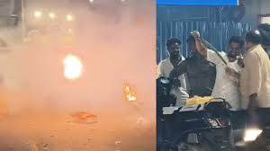 సాక్షి డిజిటల్ న్యూస్ :కుటుంబ సభ్యులు, ఆత్మీయులమధ్య సంతోషంగా చేసుకోవాల్సిన వేడుకలు శృతిమించుతున్నాయి. కొందరు పుట్టినరోజులు పేరుతో చేస్తున్న హడావుడి స్థానికులకు ఇబ్బందిగా మారటంతో పటు పలుమార్లు వివాదాలకు దారితీసింది. తాజాగా తణుకులో కందరు యువకులు కేక్ కట్టింగ్ సందర్భంగా చేసిన హడావుడి తీవ్రదుమారం రేపింది. తల్వార్లతో హడావుడి చేయటం స్థానికులను భయబ్రాంతులకు గురిచేసింది. వివరాల్లోకి వెళితే.. పుట్టినరోజు వేడుకలు పేరుతో తణుకు పట్టణంలో యువకులు వీరంగం సృష్టించారు. బాణాసంచా, జువ్వలు కాల్చుతూ హంగామా చేశారు. రోడ్లు అత్యంత రద్దీగా ఉండే సమయంలో స్థానిక వెంకటేశ్వర థియేటర్ సెంటర్ వద్ద యువకులు చేరి కేకులు కోస్తూ వేడుకలు చేశారు. అక్కడితో ఆగకుండా కత్తితో విన్యాసాలు చేయటంతో స్థానికులు భయభ్రాంతులకు గురయ్యారు. తణుకు పట్టణానికి చెందిన ఒక యువకుడు తన పుట్టినరోజు వేడుకలు పేరుతో నడిరోడ్డుపై చేసిన హంగామా వాహనదారులు, పాదచారులు, వ్యాపారస్తులను తీవ్ర ఇబ్బందులకు గురిచేసింది. విచ్చలవిడిగా బాణసంచా కాల్చుతూ ఎవరికివారు.. పరిసర ప్రజల ఇబ్బందులను సైతం పట్టించుకోలేదు. ఇదే సమయంలో అటుగా వెళుతున్న పాదచారులు, వాహనదారుల పైకి బాణసంచా దూసుకు రావడంతో భయంతో కొందరు పరుగులు తీశారు. మరికొందరికి స్వల్ప గాయాలయ్యాయి. ఇదే సమయంలో అక్కడే ఉన్న ట్రాఫిక్ పోలీసులు సైతం చోద్యం చూస్తూ ఉండిపోవటం వివాదాస్పదంగా మారింది. దాదాపు అరగంటసేపు చేసిన హంగామాతో స్థానికులు హడలెత్తిపోయారు.నిన్న మొన్నటి వరకు జాతీయ రహదారిపై ఇలా పుట్టినరోజు వేడుకలు చేసుకుంటూ బాణసంచా కాల్చేవారు. అయితే ఈ సంస్కృతి ఇప్పుడు తణుకు పట్టణం నడిరోడ్డు పైకి విస్తరించడం తణుకు పట్టణ వాసులకు ఆందోళన కలిగిస్తోంది. ఇప్పటికైనా పోలీసు అధికారులు చర్యలు తీసుకోవాలని పలువురు కోరుతున్నారు. ఇక సామాజిక మాధ్యమాల్లో ఈ హడావుడి హల్చల్ చేయటంతో పుట్టినరోజు వేడుకలు రోడ్ల మీద జరుపుకున్న ఆకుల కళ్యాణ్ తో పాటు పలువురిని తణుకు టౌన్ పోలీసులు స్టేషన్ కి పిలిపించారు. సిఐ ఎన్ కొండయ్య యువకులను పోలీస్ స్టేషన్ తరలించి వారికి కౌన్సిలింగ్ ఇచ్చారు. అంతేకాకుండా వారిపై కేసు నమోదు చేశారు. పుట్టినరోజు వేడుకలు జాతీయ రహదారిపై, బహిరంగ ప్రదేశాల్లో నిర్వహిస్తే వారిపై కఠినమైన చర్యలు తీసుకుంటామని పోలీసులు హెచ్చరించారు.