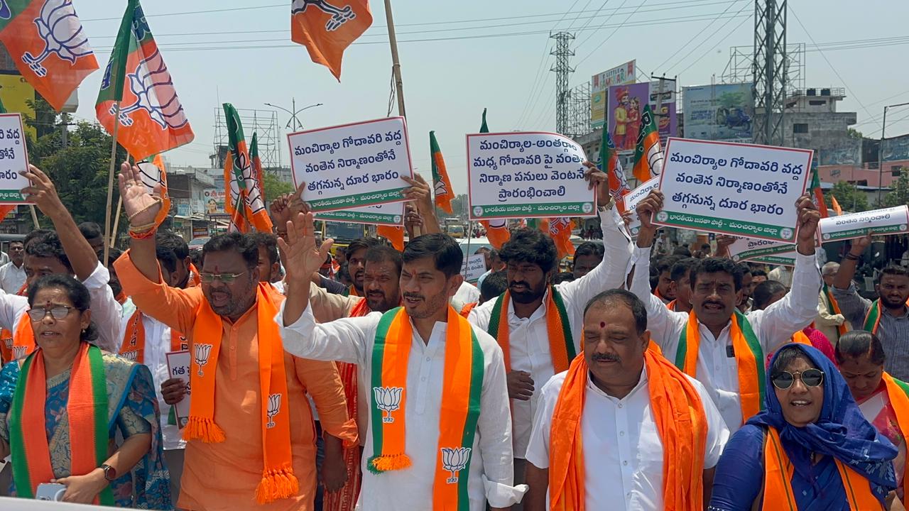 మంచిర్యాల - అంతర్గాం మధ్య గోదావరి పై వంతెన నిర్మించాలని డిమాండ్ చేస్తూ బీజేపీ పార్టీ ఆధ్వర్యంలో మంచిర్యాల ఐబీ చౌరస్తా వద్ద చేపట్టిన గోదావరి వంతెన పోరు కార్యక్రమంలో బీజేపీ రాష్ట్ర ఉపాధ్యక్షులు రఘునాథ్ వెరబెల్లి మరియు జిల్లా అద్యక్షులు నగునూరి వెంకటేశ్వర్ గౌడ్ పాల్గొని పేద ప్రజలకు ఉపయోగపడే చోట మంచిర్యాల - అంతర్గాం మధ్య గోదావరి పై వంతెన నిర్మించాలని ఇక్కడ నిర్మాణం చేపట్టడం వల్ల బస్ లో వెళ్లే పేద ప్రజలకు ఒక్కొక్కరికి రోజుకు 100 రూపాయలు ఖర్చు ఆదా అవుతుందని రఘునాథ్ గారు అన్నారు. ఈ బ్రిడ్జి నిర్మాణం చేపట్టకపోవడంతో ఒక్క ఏడాదిలో దాదాపు 80 నుండి 100 కోట్ల రూపాయలు ప్రజల పై భారం పడుతుందని అన్నారు. మాజీ ఎమ్మెల్యే, భారత రాష్ట్ర సమితి పార్టీ పది సంవత్సరాలు వంతెన నిర్మాణం చేపట్టకుండా కాలయాపన చేస్తే ఇప్పుడు ఉన్న కాంగ్రెస్ ఎమ్మెల్యే తన స్వార్థ ప్రయోజనాల కోసం కమిషన్లకు కక్కుర్తి పడి ఇక్కడ వంతెన నిర్మించకుండా మంజూరు అయినా వంతెనను రద్దు చేయడం జరిగింది. మంచిర్యాల- అంతర్గం మధ్య వంతెన నిర్మాణం వెంటనే ప్రారంభించాలని డిమాండ్ చేశారు.ఈ కార్యక్రమం లో బీజేపీ రాష్ట్ర నాయకులు దుర్గం అశోక్, జిల్లా ఉపాధ్యక్షులు వంగపల్లి వెంకటేశ్వరరావు, మంచిర్యాల్ కార్పొరేషన్ ఫ్లోర్ లీడర్ గాజుల ముఖేష్ గౌడ్, కార్పొరేటర్లు నాగరాజు, నాయకులు బోట్ల సత్యనారాయణ అధిక సంఖ్య లో బీజేపీ కార్యకర్తలు పాల్గొన్నారు.