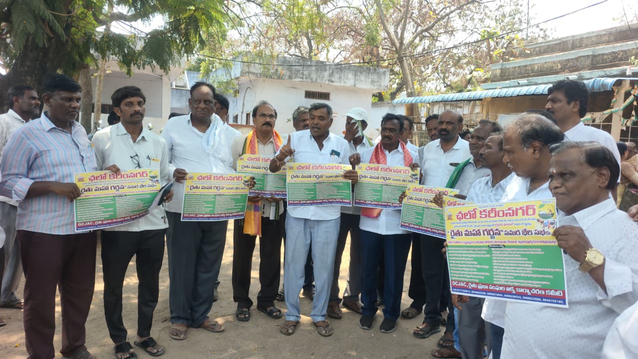 ఈ నెల 28 న కరీంనగర్ లో రైతు ప్రజాసంఘాల జేఏసీ ఆధ్వర్యంలో రెండు లక్షల మందితో రాష్ట్ర స్థాయి రైతుల మహా గర్జన సమర భేరి సభను పార్టీల కతీతంగా చారిత్రాత్మకంగా నిర్వహిస్తామని పెద్ద ఎత్తున ఉమ్మడి జిల్లా వ్యాప్తంగా కదలి వచ్చి విజయవంతం చేయాలని కోరారు.ఈ కార్యక్రమంలో రాష్ట్ర రైతు ప్రజాసంఘాల జేఏసీ ప్రథాన కార్యదర్శి ఎడవెల్లి కొండాల్ రెడ్డి ఉమ్మడి జిల్లా ఆర్య వైశ్య సంఘాల నాయకుడు తాటిపల్లి రాజన్న హుజురాబాద్ డివిజన్ రైస్ మిల్లర్ల అసోసియేషన్ అధ్యక్షుడు కల్లెపు మోహన్ రావు .సీడ్ కంపెనీల అధ్యక్షుడు ఐరేని భాస్కర్ రెడ్డి.నాయకులు పుల్లూరి ప్రభాకర్ రావు. పలకల ఈశ్వర్ రెడ్డి.గర్రెపల్లి రాజ మొగిలి , హరి శంకర్. జైపాల్ రెడ్డి. వేల్పుల రత్నం.రాజేశ్వర్ రావు.సంపథ్ రావు తదితర రైతు ప్రజాసంఘాల జేఏసీ నాయకులు పాల్గొన్నారు.